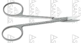 Chirurgické nůžky zahnuté, 110 mm, pro přesné stříhání v těžko přístupných oblastech při operacích.