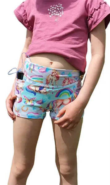 • Kalhotky jsou zhotoveny tak, aby na každou stranu stehna bylo možné umístit pumpičku do integrované kapsičky a do dvou kapsiček schovaný v lemu kalhotek.