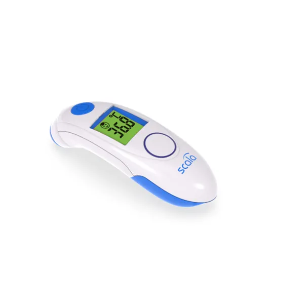 Digitální infračervený teploměr na čelo je bezkontaktní zařízení pro rychlé a přesné měření tělesné teploty dospělých i dětí. Měření probíhá během 1 sekundy, přičemž výsledky jsou indikované světelnou signalizací a při překročení normální teploty aktivuje alarm horečky. Teploměr ukládá posledních 9 naměřených hodnot a umožňuje přenášení dat do mobilních zařízení prostřednictvím NFC a spravování v aplikaci OUcare pro iOS a Android. Napájen je 2 bateriemi R03, jejichž životnost umožňuje přibližně 3 000 měření. Kompaktní rozměry 41,4 × 44 × 124 mm a hmotnost 88 g zajišťují snadnou manipulaci a přenosnost. Barva teploměru je bílá s modrou.