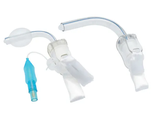 Tracheostomická kanyla velikosti 6,5 s manžetou z transparentního PVC, včetně fixační pásky a stylet-obturátoru.