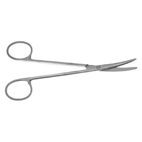 Preparační nůžky Metzenbaum, 145 mm, zahnuté, z japonské nerezové oceli, určené k preparaci, stříhání tkáně, odstranění stehů, stříhání krytí a nití v lékařství.