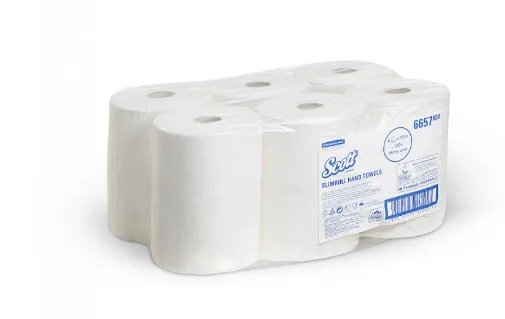 Jednovrstvé papírové utěrky Scott Slimroll 6657 o délce 165 m, bílé. Papírové jednovrstvé ručníky ve vysokokapacitních rolích regulují množství odebraných útržků a pomáhají snižovat náklady i omezovat plýtvání. Lze je použít na místech, kde dochází ke kontaktu s potravinami, v rušných kancelářských, hotelových umývárnách a toaletách. Zajišťují rychlé a pohodlné osušení rukou s menším počtem ručníků. Ručníky jsou vyrobeny z pevné a vysoce absorpční tkaniny AIRFLEX, která zajišťuje savost a odolnost proti roztržení i za mokra. Nesou označení EU Ecolabel. Velmi kvalitní ručníky, které Vám oproti běžným papírovým ručníků vydrží mnohem delší čas. Lze kombinovat se zásobníky na ručníky Aquarius Slimroll (6953). Specifikace:
