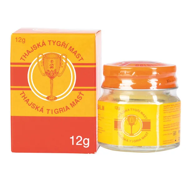 Thajská tygří mast s hřejivo-chladivým osvěžujícím efektem s výtažky z máty, eukalyptu a hřebíčku. Používá se při bolestech hlavy, svalových obtížích a stavech revmatizmu, bolestech kloubů, zad a nohou, poúrazových stavech, k aktivaci kožních buněk...