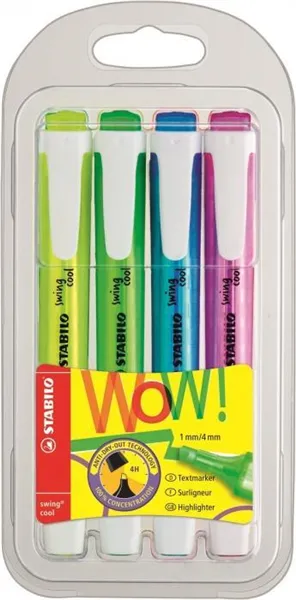 Sada kapesních zvýrazňovačů s inkoustem na vodní bázi. Šíře stopy 1 – 4 mm.